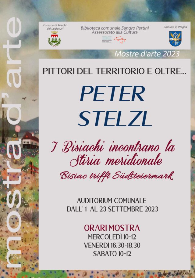 Dal 01 al 23 settembre 2023 – Auditorium Comunale “Casa della Cultura” I BISIACHI INCONTRANO LA STIRIA MERIDIONALE BISIAC TRIFFT SÜDSTEIERMARK di Peter Stelzl   Orari per visitare la mostra: Mercoledì: 10:00-12:00 Venerdì: 16:30-18:30 Sabato: 10:00-12:00   Riprendono in Auditorium Comunale “Casa della Cultura” le esposizioni dei “Pittori del territorio… e oltre”, ma questa volta...